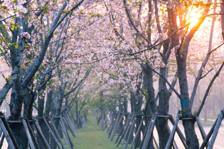 提到樱花,大多量东说念主领先思到的可能是武汉粗略日本。但鲜为东说念主知的是,扬州也有一条好意思不堪收的樱花通衢。每年3月,鉴真通衢上的樱花便会按期灵通,皑皑如雪的花瓣与粉嫩如黛的花蕊相互交汇,组成了一派放纵的粉色海洋。几百米长的樱花通衢,宛如动漫里的场景,充满了黑甜乡与诗意。