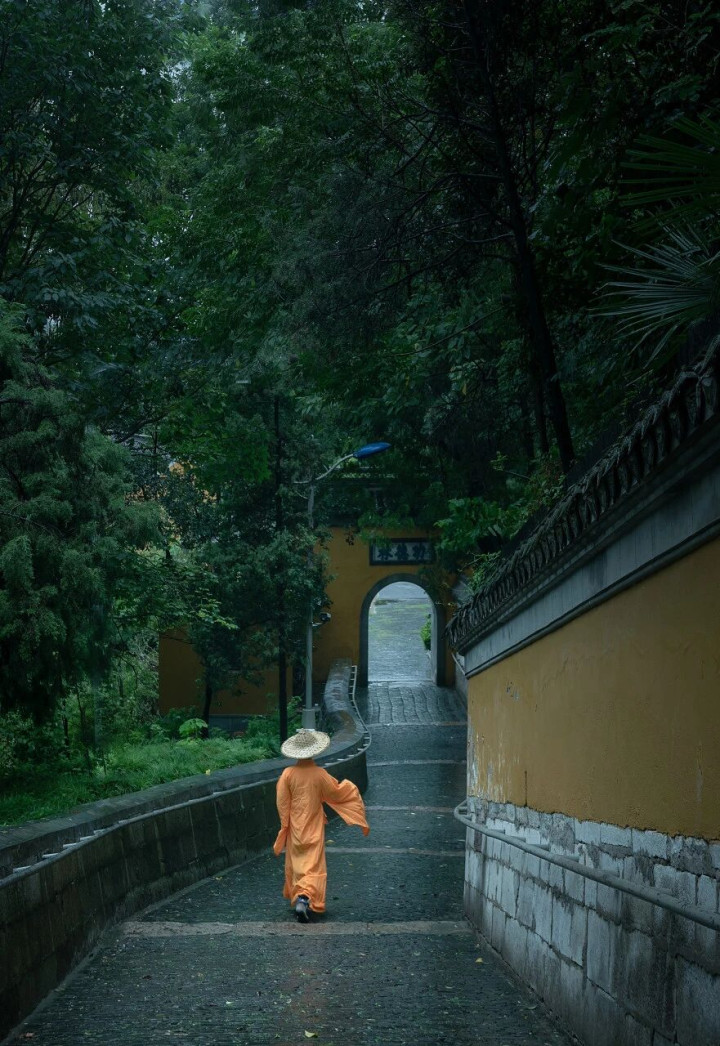 迈进寺内,古木参天,邑邑苍苍,闹热的枝桠交汇成一派凉爽的绿荫,将人间的喧嚣间隔在外。