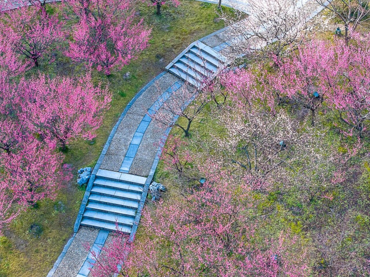 除了樱花,梅花亦然扬州春天的使臣。扬州的春梅毛病累累,每到春天,蜀冈西峰上万千梅花竞相灵通,红的似火、粉的如霞、白的像雪,五彩纷呈的花海仿若一派秀丽的云霞,劈头盖脸,让东说念主引东说念主入胜。