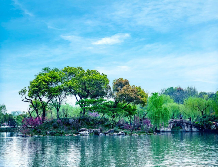 堤岸边,垂柳轻拂,丝丝缕缕,与竞相盛放的百花相互衬映,共同勾画出一幅如梦似幻的好意思景,宛如一幅刚刚上色的水墨画,簇新而清雅,好意思得令东说念主心醉神迷,叫东说念主镂骨铭心。