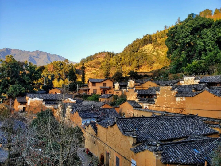 杨家堂村最为出名。村里的黄泥房重重叠叠,依山而建,夕阳西下时,整座村子被镀上一层温柔的金黄,宛如一座微缩的“金色布达拉宫”。村口,两棵五百多岁的老樟树依旧枝繁叶茂,如两位慈蔼的长辈,沉默看管着这座村庄。