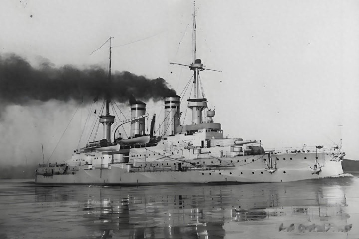 确实让240毫米速射炮大放光彩的是奥匈帝国舟师。奥匈帝国版K97型,炮重28吨,其穿甲弹重229公斤(弹重以致跳动了英国同时的254毫米舰炮炮弹),初速为705米/秒,足以击穿“无敌”级战列巡洋舰的舷侧装甲。自后,斯柯达兵工场研制出威力更大的240毫米/45倍径舰炮,穿甲弹重215公斤,初速为800米/秒,奥匈帝国的“拉德茨基”级准丧胆舰就配备了8门该型舰炮。