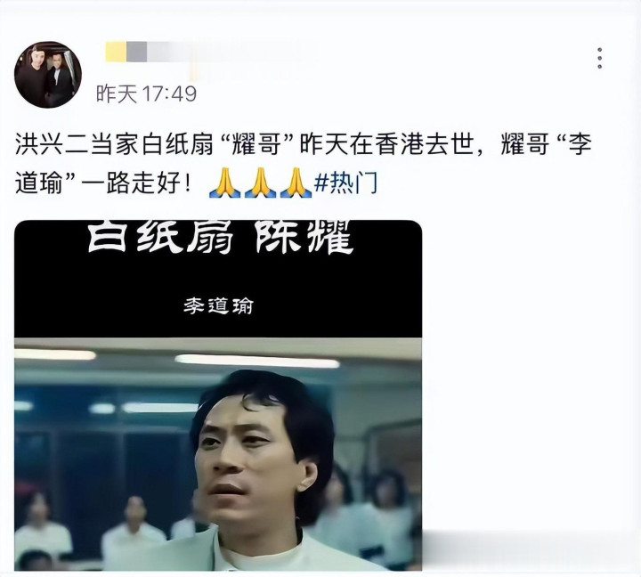 4月3日,香港影视圈传来一个令东说念主悲悼的音信,曾在经典电影《古惑仔》系列中上演洪兴社智囊“陈耀”的资深演员李说念瑜痛楚离世,常年58岁。