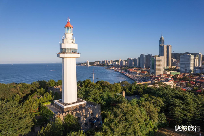 烟台山鸟瞰城海邻接,红顶老洋房掩映在绿树间。芝罘湾广场,傍晚坐船看海边夜景,舒服斥逐此次旅程。